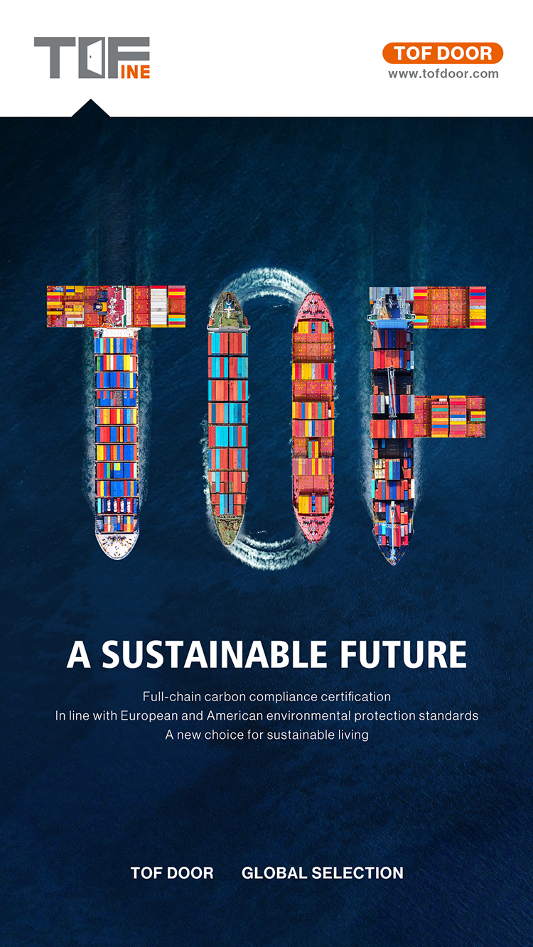 The striking visual of three container ships forming the letters "TOF" on the open sea, as depicted in the company's latest campaign, powerfully symbolizes TOF DOOR's expansive global reach and efficient, responsible supply chain capabilities. It underscores the company's dedication to international trade while emphasizing its core value of environmental stewardship.