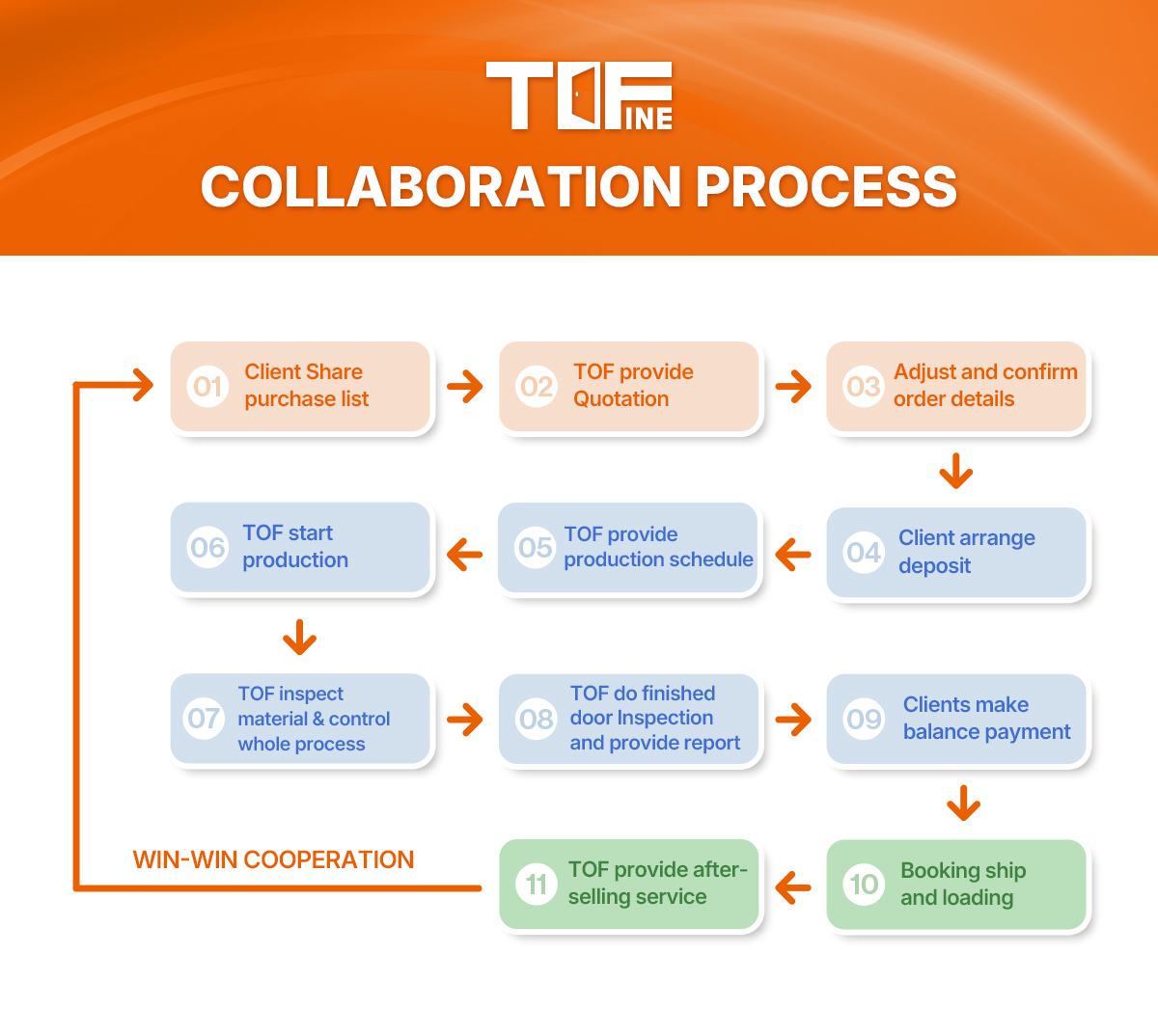 This detailed guide outlines every stage of working with TOF DOOR, demonstrating our commitment to excellence and a true Win-Win Cooperation.